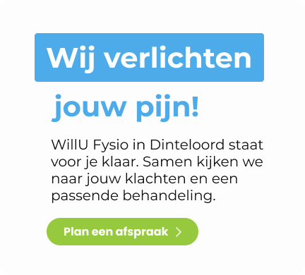 Schakel dan een fysiotherapeut in van WillU Fysio in Dinteloord. Onze praktijk, gevestigd in West-Brabant, is er om jouw pijnklachten te verminderen en het dagelijkse leven een stuk mobieler en dragelijker te maken.